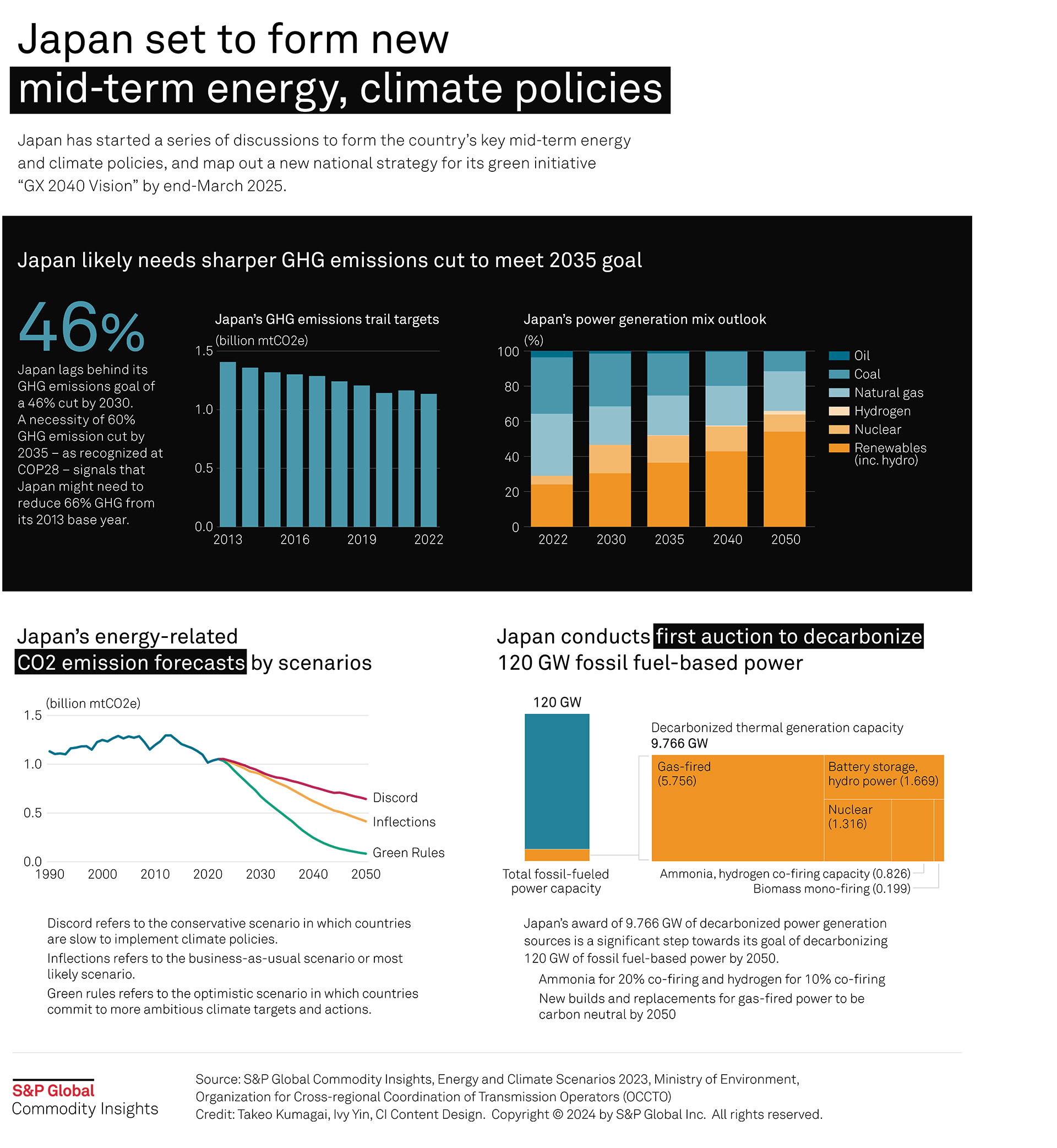 Japan will likely need a sharper greenhouse gas emissions cut for 2035 as the country weighs a new target, following the necessity of a 60% GHG emission cut by that year as recognized at COP28, accelerating the country's target of a 46% GHG cut by 2030, to reach 2050 carbon neutrality.