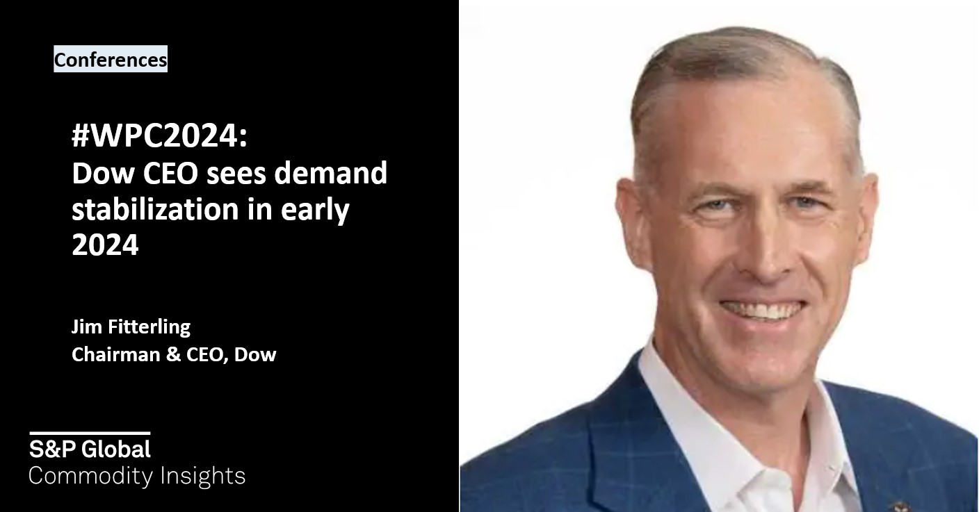 Chemical demand is stabilizing in early 2024, Dow Inc. chairman and CEO Jim Fitterling said at the World Petrochemical Conference by SP Global in Houston. Construction of Dow’s net-zero Alberta cracker will begin soon, and the company hopes to pursue similar net-zero ethylene investment in the US. WPC took place from March 18-22 and LIVE is your all-access pass to the conference. Check back for more chemical insights and cutting-edge coverage.