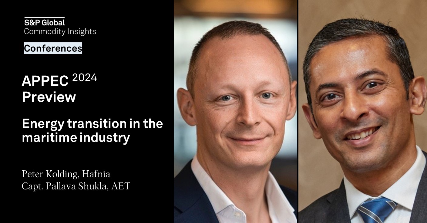 Benjamin Tang, Director, Head of Liquid Bulk, S&P Global Commodity Insights speaks with Peter Kolding, VP Commercial of Hafnia and Capt. Pallava Shukla, Director of Health, Safety, Security and Environment (HSSE) and Decarbonisation of AET, on the tanker turbulence and fleet planning towards decarbonization in mitigating environmental impact. Join us at the upcoming 40th Annual APPEC conference taking place on September 9 - 12, 2024. Discover the latest trends, challenges, and opportunities shaping the global energy landscape. Uncover more on the shipping and bunker markets, and engage with industry leaders, policymakers and innovators on Day 3, in our Shipping & Bunker Conference on Sep 11. Register today.